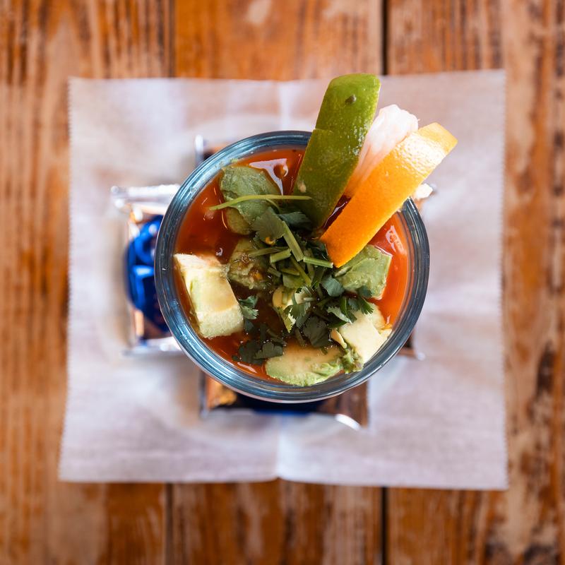 Tequila, Rum, secret recipe of Clamato mix on ice
